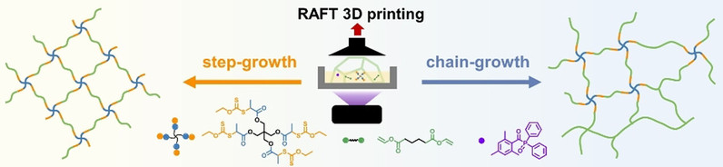Tuning the Mechanical Properties of 3D-printed Objects by the RAFT Process: From Chain-Growth to Step-Growth