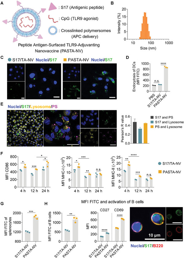 Abstract:Peptide antigen vaccines constitute a promising clinical strategy for treating cancer patients. However, their anticancer immune response remains modest because of the suboptimal presentation of peptide antigens and/or insufficient activation of antigen-presenting cells (APCs). The development of therapeutic vaccines for acute myeloid leukemia (AML) poses an even greater challenge because AML cells disseminate throughout the body. In this study, the peptide antigen-surfaced TLR9-adjuvanting nanovaccines (PASTA-NV), which display multiple Wilm's tumor 1 (WT1) peptides on their surface and encapsulate CpG ODN adjuvants within their watery interior to simultaneously increase antigen presentation and APC activation/proliferation, are reported. Interestingly, systemic administration of PASTA-NV induces strong cellular and humoral anticancer immune responses in orthotopic murine AML MLL-AF9 models. When combined with an anti-CTLA4 antibody, PASTA-NV achieves complete regression of AML in mouse models and establishes durable anti-AML immunity, effectively resisting rechallenge with leukemic cells. PASTA-NV provides a new and general avenue to induce robust and specific anticancer immunity, which has the potential to revive peptide antigen-based nanovaccines for tumor therapy.
