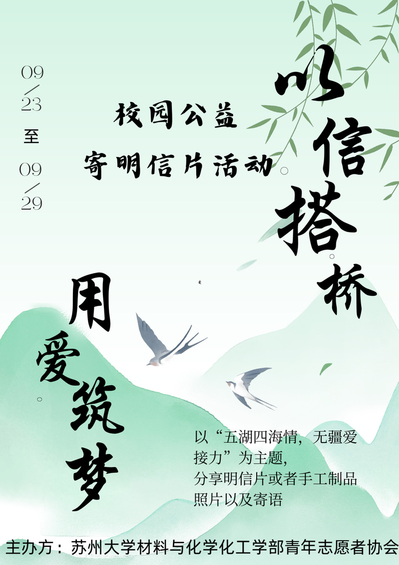“以信搭桥,用爱筑梦”—校园公益寄明信片活动汇聚五湖四海之的学子之力,共同聚焦困境儿童的现状,通过我们的校园温暖行动,传递关爱与希望。此次活动不仅是对困境儿童的一次情感慰藉,更是向他们展示社会大家庭的关怀与支持,希望通过不同地区的明信片和贺卡,希望孩子们能看见和感受不同的风景。