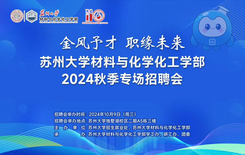 为深入贯彻习近平总书记关于做好“六稳”“六保”工作重要指示精神,落实党的二十大报告中提出的“强化就业优先政策,健全就业促进机制,促进高质量充分就业”的就业战略,切实做好高校毕业生就业观引导工作,2024年10月9日下午,B站视频 材料与化学化工学部在独墅湖校区二期A05三楼招聘大厅举行了“金风予才,‘职’缘未来”2024秋季专场招聘会。