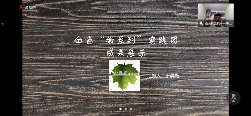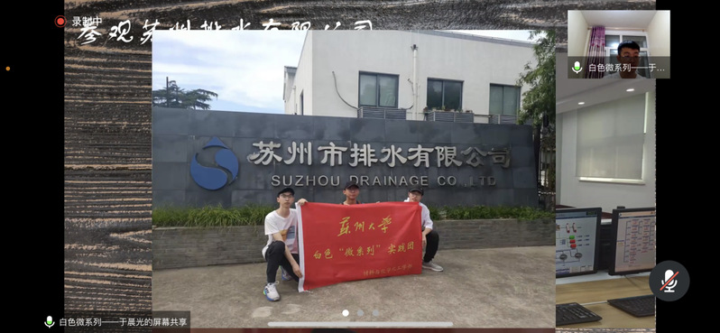 白色“微系列”实践团负责人于晨光讲述了打捞福寿螺,走访垃圾厂,检测水质的实践活动,团队在调研过程中感悟到净水是一项极为困难的工程。