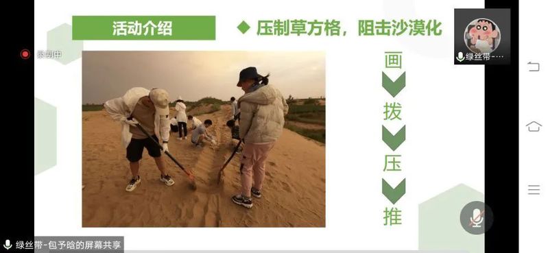 “绿丝带”公益团以改善中国沙漠化现状为首要目标,统筹推进乡村振兴与绿色发展,保卫绿水青山、铸梦公益防沙。团队来到甘肃省民勤县,在沙漠铺覆草方格,为当地农户带去生物降解地膜助力乡村振兴。