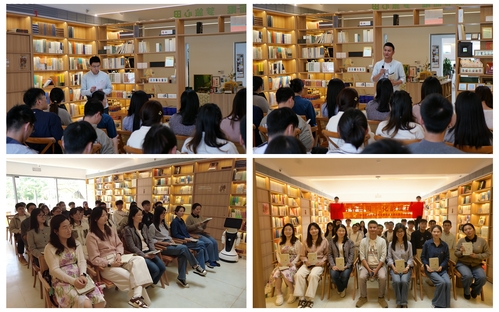 在“书香润心,思想共鸣——共读共学”环节,物理及分析化学支部的党员代表郑佳磊结合科研与阅读实践,建议党员同志培养阅读习惯可从三方面入手:一是固定时段阅读,如晨起或睡前,形成生物钟记忆;二是主题式阅读,围绕党史、专业领域或经典著作系统学习,避免碎片化;三是输出倒逼输入,通过写读书笔记、分享心得等方式深化理解。阅读是思想的磨刀石,他告诫党员同志应带头养成阅读习惯,以理论清醒保持政治坚定,让书香浸润初心使命。在书香氤氲的心田里书房,党员们手捧书籍围坐成圈,结合专业知识和乡村振兴实践畅谈阅读感悟,翻动的书页间不断碰撞出思想的火花,将现场氛围推向高潮。