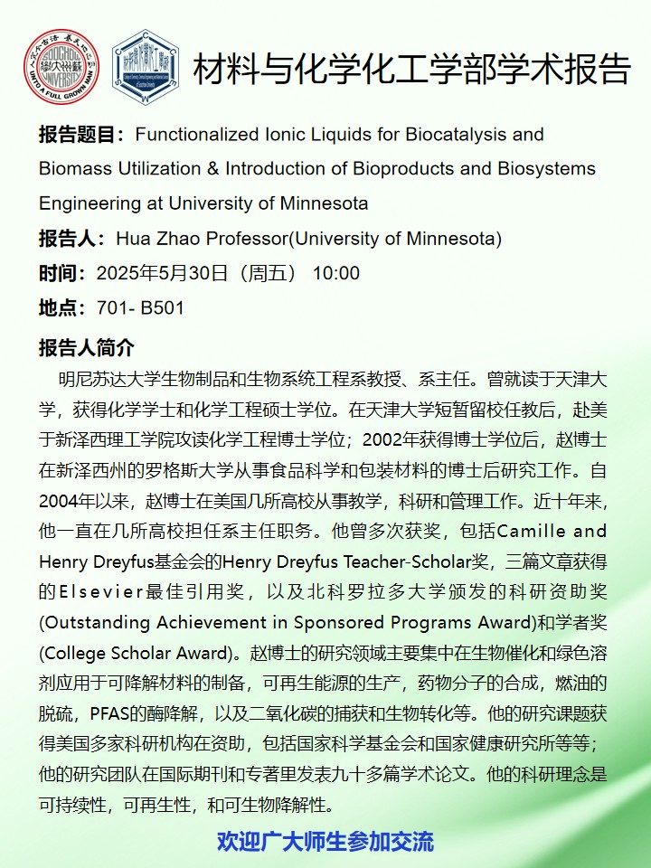 Functionalized lonic Liquids for Biocatalysis andBiomass Utilization & Introduction of Bioproducts and BiosystemsEngineering at University of Minnesota