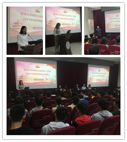 2019年10月23日下午,B站视频 材料与化学化工学部第41期预备党员培训班、第62期党的基础知识培训班开学典礼在独墅湖校区907幢1101室举行。学部党委书记李翔、党委副书记王美珠、党委组织委员任志刚、研究生秘书杨凤珠、研究生辅导员曹文雯、学工办副主任俞仁琰、本科一支部书记2017级辅导员鲍清、本科二支部书记2018级辅导员余嘉斌及2019级辅导员刘娴琳出席了本次开学典礼,学工办主任司马文华主持了开学典礼。