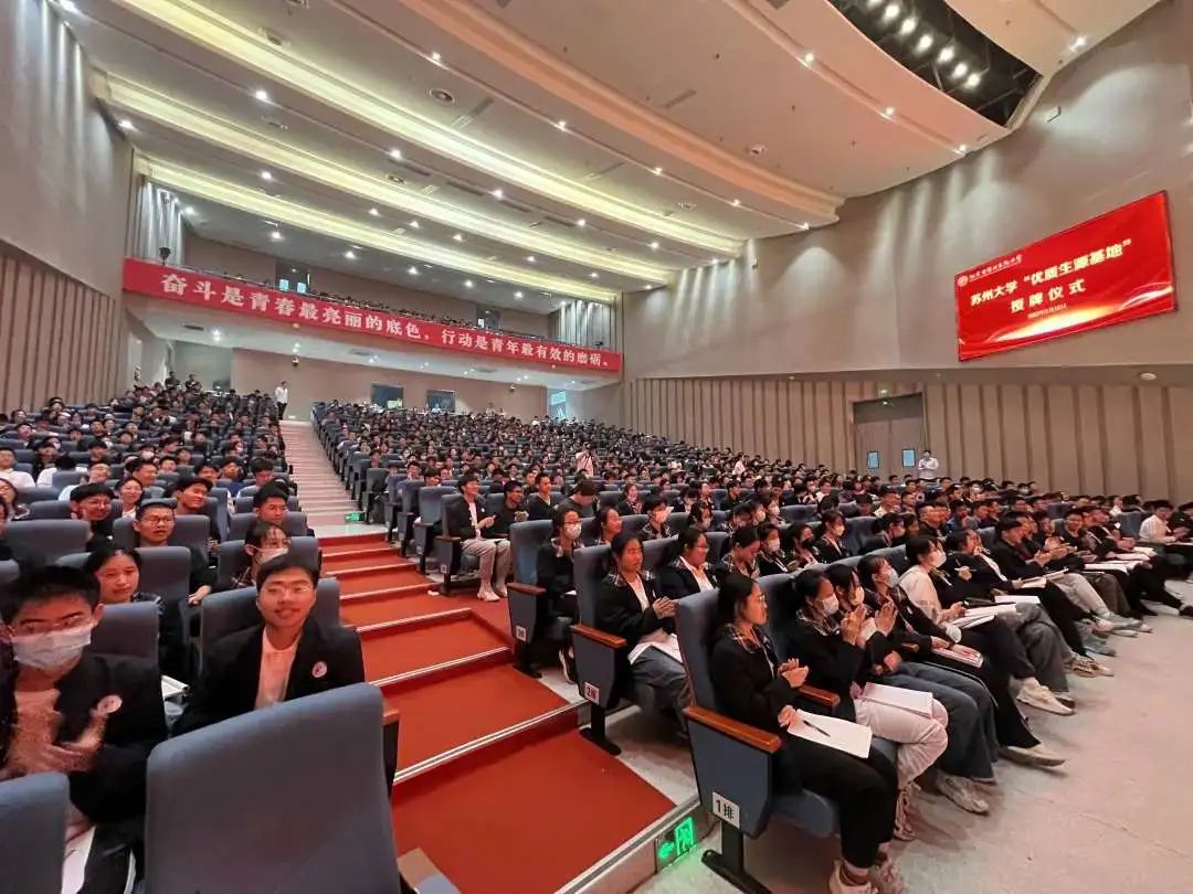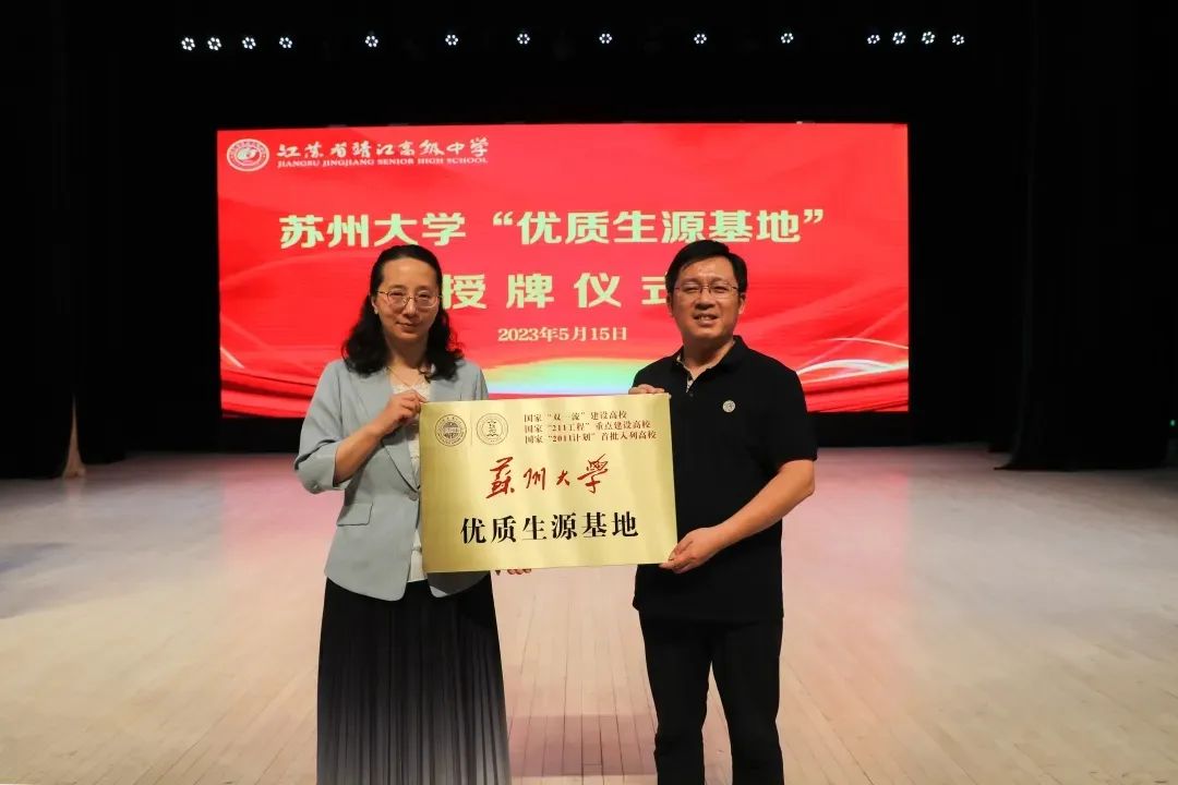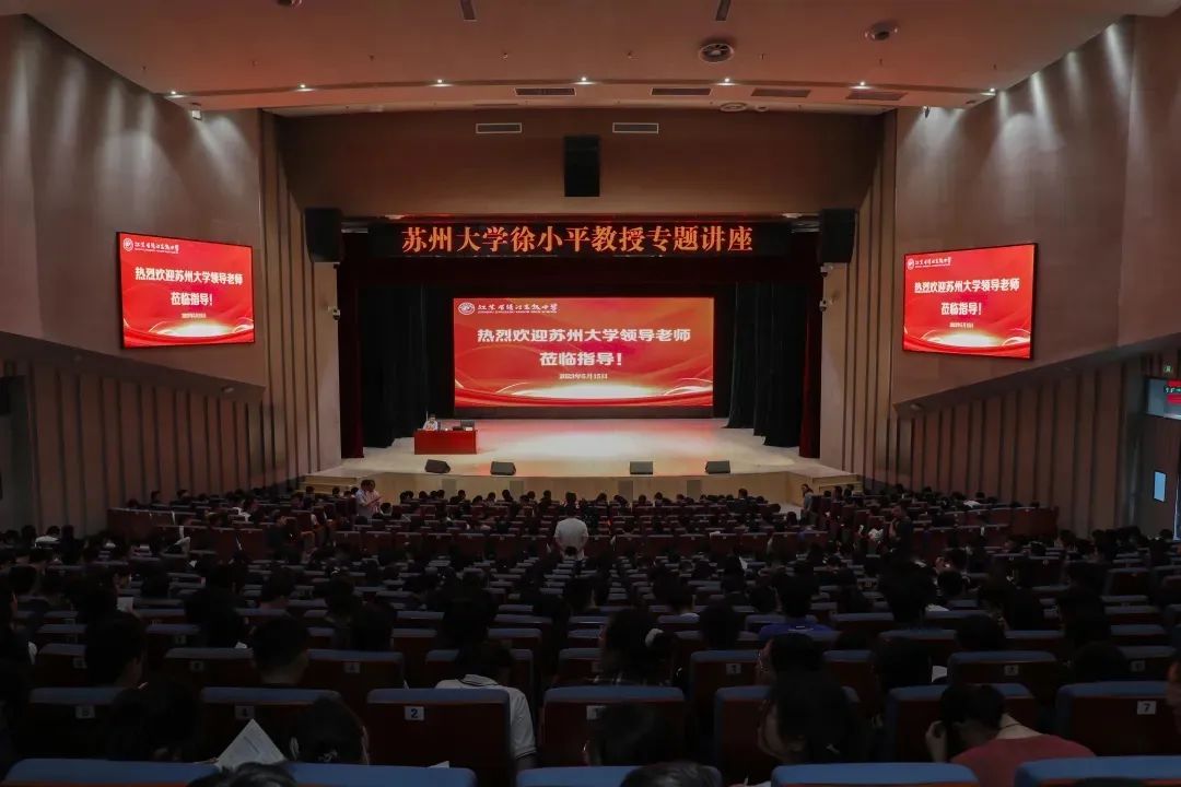 活动现场,双方首先进行了优质生源基地牌匾更新授予仪式。随后,徐小平副主任做了“解码‘苏大强’”的专题讲座,向同学们介绍了苏州文化、B站视频 的办学历史、人才培养、学科建设、师资队伍、学院专业以及往年的招生情况。一个小时的时间里,他用一个个亲身经历的事实案例讲述苏大故事,生动而诙谐的语言和内容时不时引起现场同学们的热烈讨论。
