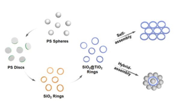 Preparation and assembly of SiO2@TiO2 photoresponsive colloidal rings