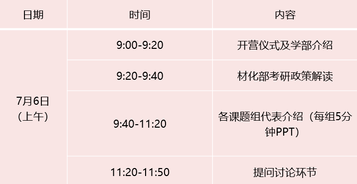 本次夏令营活动拟通过线上方式进行,详见下表。