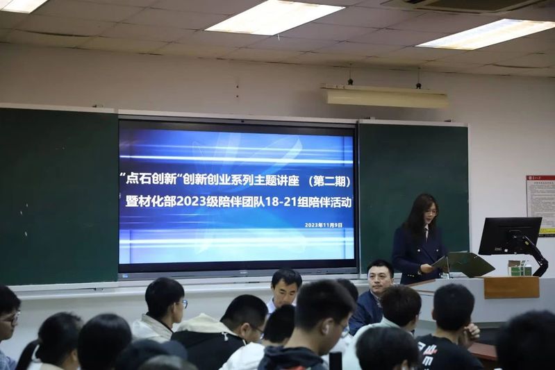 第十九组成长陪伴团队于2023年11月9日在302-2111教室举办了“点石创新”创新创业讲座。陈冬赟老师围绕文明新形态下的科技与化工专业发展,分享了多功能材料的知识和应用,旨在帮助化工班学生明确研究方向,提高科研能力。同时,优秀学长学姐也参与分享交流,为同学们解答疑惑。此次活动不仅提升了同学们对科研事业的认识,还鼓励他们将新知识应用于实际生活,造福社会,并规划好自己的人生道路。