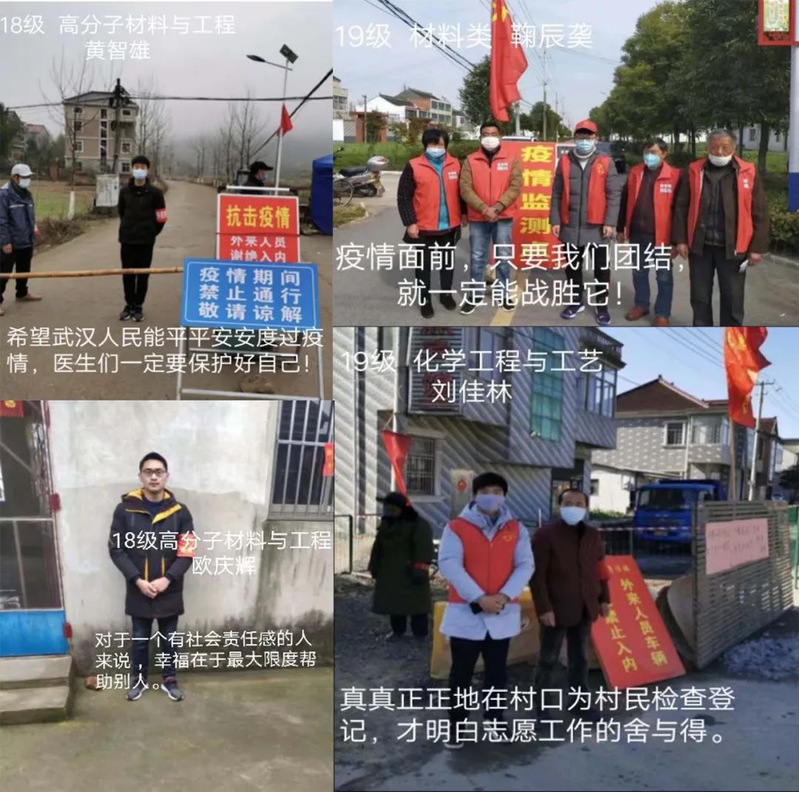 在打响疫情防控的人民战争、总体战、阻击战之后,材化学子积极响应中央号召,积极参与到社区疫情防控的第一线,为疫情防控作出了自己的贡献。学部青年志愿者协会以线上信仰公开课为契机,介绍了在疫情防控过程中,近百名材化部学生在家乡各个地区展开防疫志愿工作的相关情况。志愿者们在各自的岗位上发光发热,在这场艰难的战役中奉献了自己的一份力量。