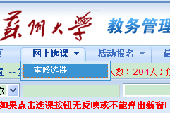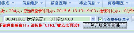 注:如果点击选课按钮无反映或不能弹出新窗口,请按住CTRL键的同时点击“单开班重修选课”再试!