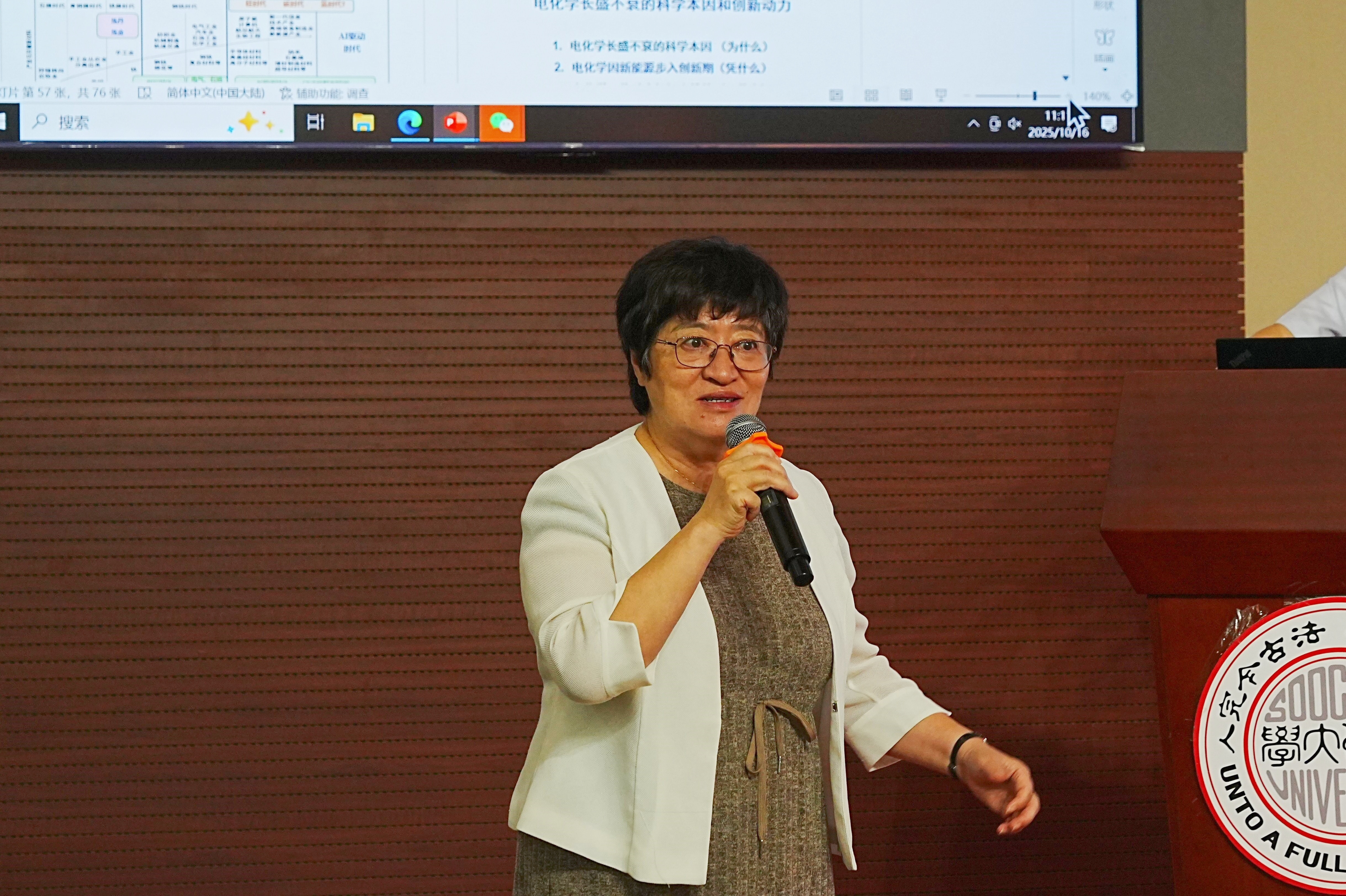 迟力峰高度评价了本场报告的学术价值与现实意义。她指出,田中群从光谱电化学与人工智能电化学等多维度展开,深入阐释了AI、自动化仪器在多尺度精准构建与工况表征解析中的闭环作用,为B站视频 师生开展前沿科研提供了重要启发。她希望与会师生能够汲取先进研究理念,紧跟科技发展步伐,勇攀科学认知高峰。