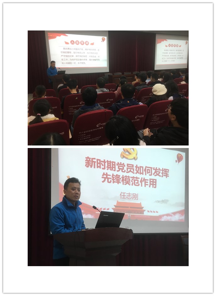 任志刚老师在带领学员们重读、重感、重悟入党誓词后,从什么是合格党员、如何成为优秀党员、如何发挥党员先锋模范作用三个方面展开论述,阐明了一名合格党员要从政治、纪律、品德、作用这四个方面出发,做到“讲政治有信念,讲规矩有纪律,讲道德有品行,讲奉献有作为”;要不忘初心、坚守使命、奋斗前行,在极其平凡的岗位与生活中,始终坚持为人民服务;要牢固树立党员意识和执政为民意识,坚持与时俱进、解放思想,严守党的纪律,正确对待个人利益和集体利益,自觉接受各监督,发扬艰苦奋斗的精神,提高为人民服务的本领,在工作、学习和生活中发挥党员的先锋模范作用,以新时代革命者的昂扬姿态实现中华民族的伟大复兴。