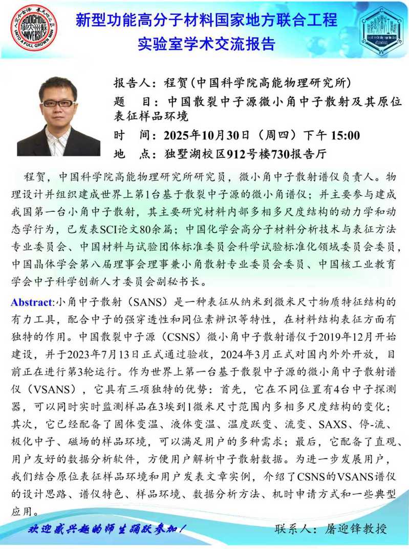 中国散裂中子源微小角中子散射及其原位表征样品环境