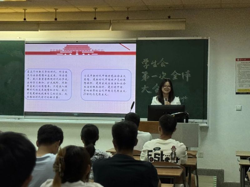 培训会伊始,宗一凡同学紧扣习近平新时代中国特色社会主义思想,以“解读时代脉搏”为引领,强调了学生会成员需紧密跟随时代步伐,主动学习新知,扩大视野,不断丰富思想库。同时指出,深入理解时代发展趋势和方向,有助于找准个人定位,成为推动时代前行的新力量。