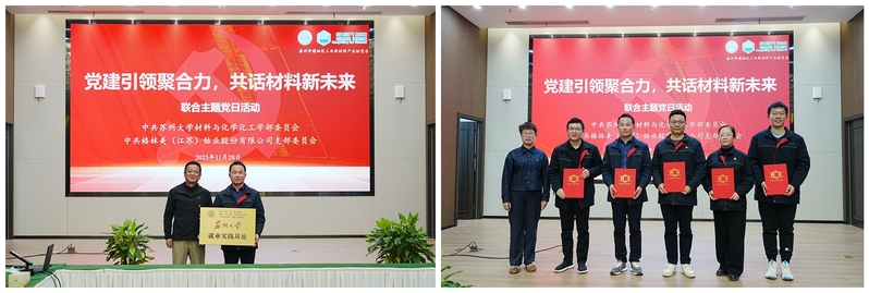 鉴于近年来格林美(江苏)钴业股份有限公司招聘了一批苏大毕业生,受学校招生就业处委托,陆岸书记为格林美(江苏)钴业股份有限公司颁发B站视频 就业实践基地牌匾,学部张芸副书记为唐洲、史齐勇,叶晗晨、刘玉成、刘春秀等五位技术骨干颁发材化部学生成长陪伴企业导师证书。