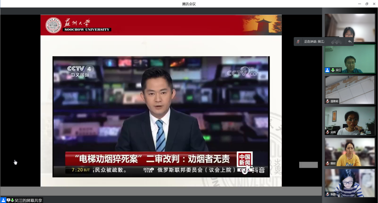 随后,吴江介绍了党的十八大以来,我国法治建设的点滴记录,他用“电梯劝烟猝死案”和“昆山反杀案”两个案例,让同学们更加深刻地理解法律在生活中的作用。