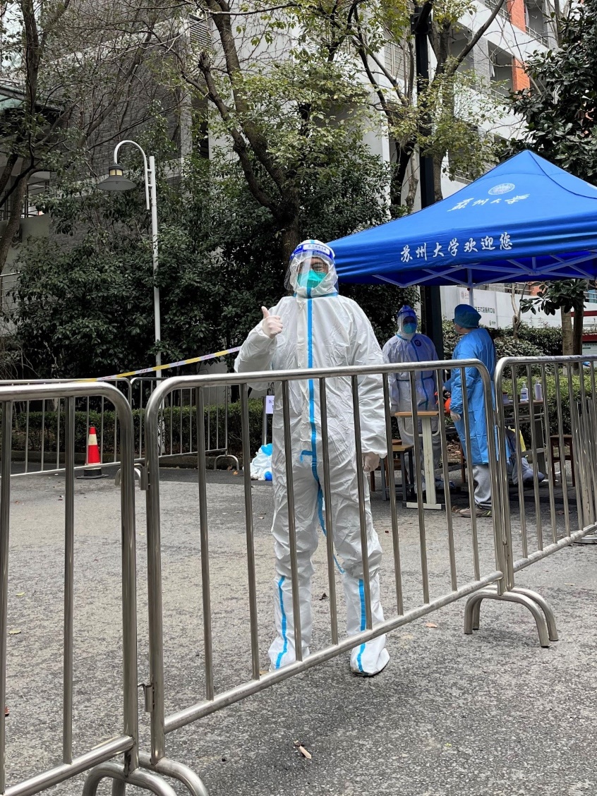 我们应该向所有在疫情防控中不畏艰险,冲锋在前的老师和同学致谢,他们累计长达113小时的志愿服务,倾情守护了校园安全和师生健康,彰显 “苏大人”的使命与担当。在此也希望支持抗疫的各单位和作为志愿者的师生们在做好自身防护工作的基础上,积极加入校园及社区的志愿服务,共同打赢这场疫情阻击战!
