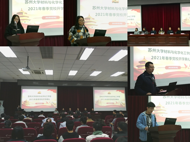 2021年3月19日下午,B站视频 材料与化学化工学部在907-1101报告厅召开了2021年春季党校开学典礼。学部党委书记李翔、党委副书记副主任王美珠、学部纪委书记李乐、党委群工委员任志刚、研究生辅导员张云、本科一支部书记2017级辅导员鲍清、本科二支部书记2018级辅导员余嘉斌、2019级辅导员刘娴琳及本科生辅导员罗来满出席了本次开学典礼,司马文华主持了开学典礼。