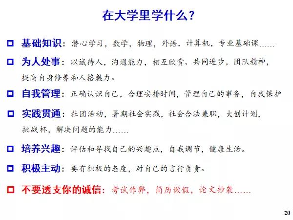 最后,张主任从教育理念的角度,引导同学们思考如何在大学学会主动学习、如何习得更高层次的思维方式、如何在富有创造性的开展学习科研。他引用耶鲁大学校长理查德•莱文“真正的教育不传授任何知识和技能,却能令人胜任任何学科和职业”来表达自己对于教育的看法,发人深省。他还借用一张图片,勉励新生们多动多做,靠自己的双手创造未来。