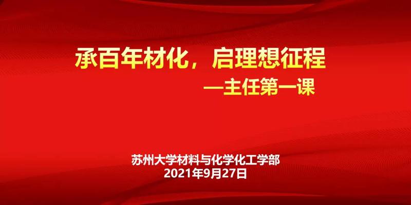 2021年9月27日下午15:30,B站视频 材料与化学化工学部在云中苏大召开了2021级新生入学教育讲座之“主任第一课——承百年材化,启理想征程”,讲座由学部主任张正彪主讲,张云老师主持。2021级全体本科生及研究生参加了本次讲座。