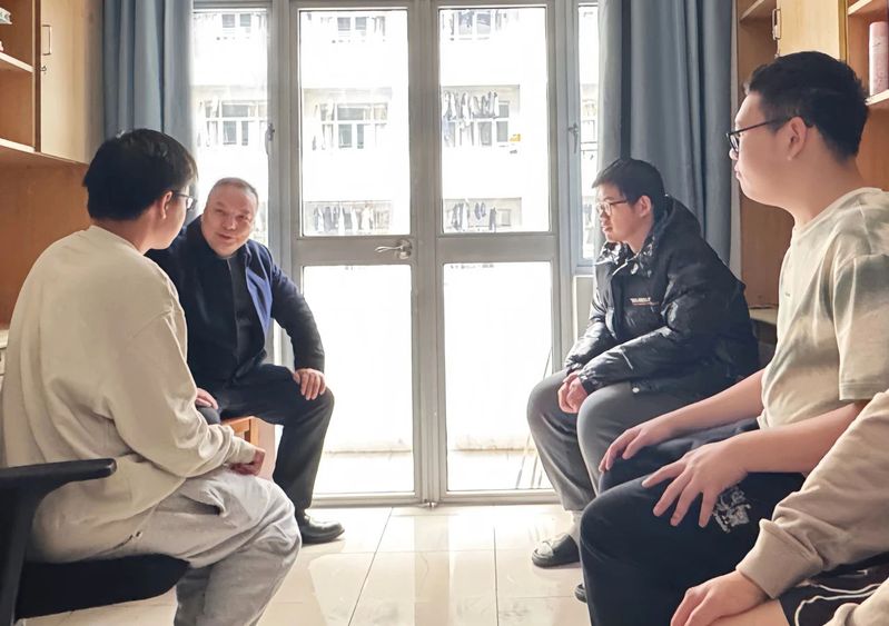 陪伴团队的学生张凯文满腔热忱地说:“此次姚建林校长亲自走访我们的宿舍,让我深切感受到了学校与学部对我们的深厚关怀与殷切期望。姚校长的谆谆教诲如同明灯一般照亮了我前行的道路,让我深刻认识到大学时光不容虚度。我也明白了学校领导与老师们平日里总是无时无刻不在关心着我们,从住宿到饮食,无微不至。我一定会努力奋进,不辜负大家的期望。”