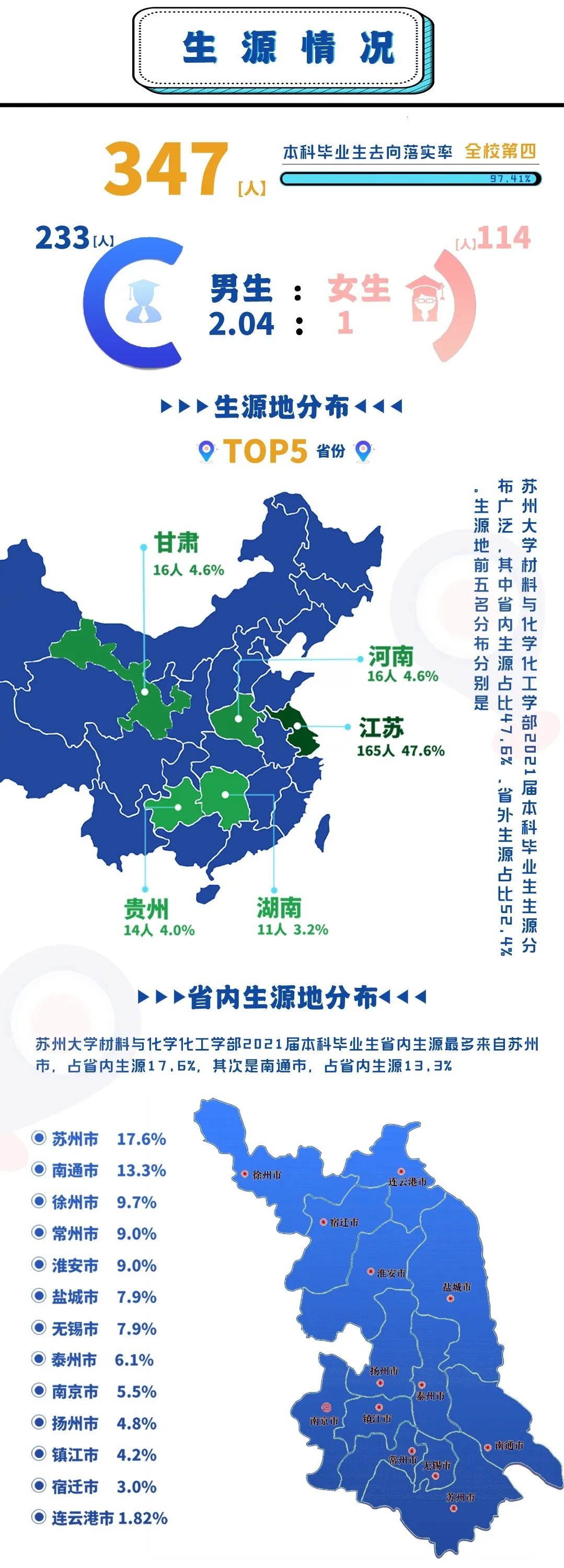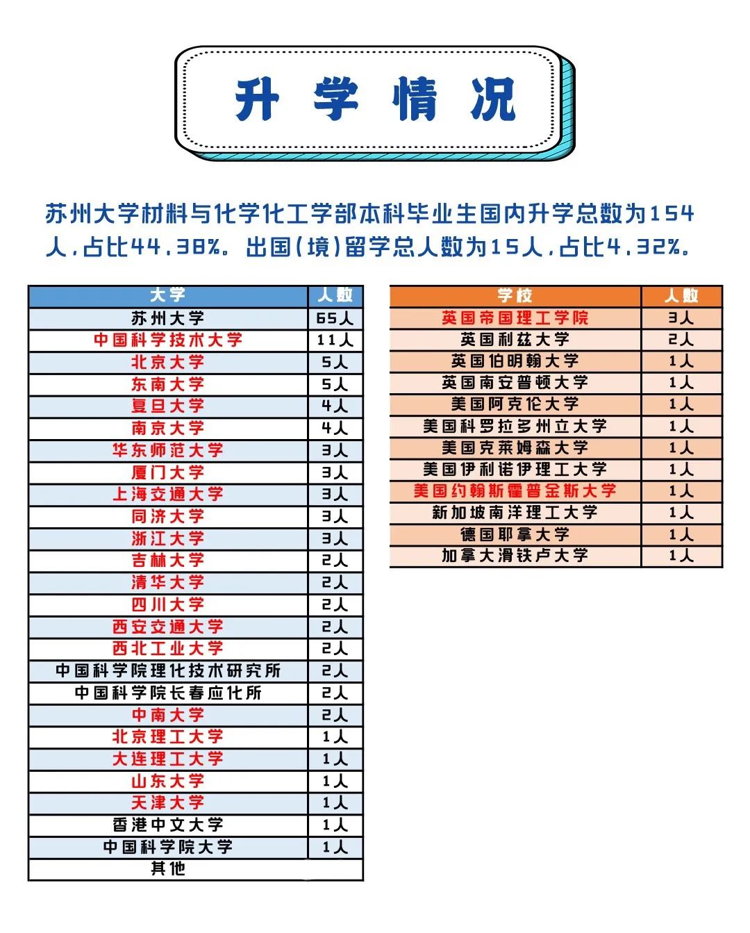 1917年,龚士博士指导的两名研究生获得化学硕士学位,是东吴大学授予的第一批硕士学位,也是迄今为止能够确定的中国第一批化学硕士。原化学化工学院在百年的办学历程中为国家输送了许多杰出人才。材料学科有近50年办学历史,目前已成为国内重要的材料科学研究和人才培养基地之一。