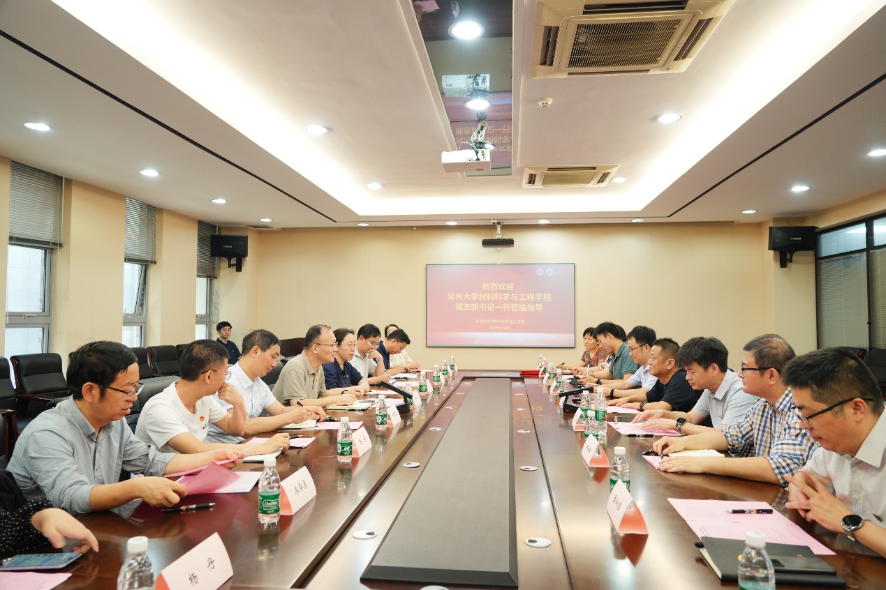 陆岸介绍了苏大材化部的基本情况、高水平党建和高质量发展举措及标志性成果。储志新介绍了常大材料学院的发展概况、近年来学院“一融双高”建设情况及取得的成效。