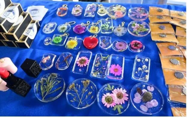 此外,在场同学还可以使用材化部研究生自主研发的胶水,制作干花相框、干花滴胶,呈现了一幅幅绚丽又充满大自然气息的干花植物贴画,让“绿色、低碳、环保”的理念根植于心间。