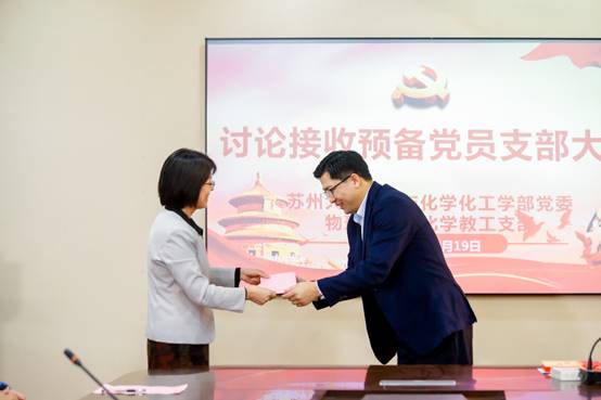 经无记名投票表决,支部党员一致同意接收封心建同志为中共预备党员。封心建教授在个人表态中表示自己将以党员标准严格要求自己,不断学习进步,为学部、学校、国家贡献自己的力量。樊建芬对封心建教授加入中国共产党表示祝贺,并表示即日起封心建教授加入本支部党员已全员加入的学部本科生成长陪伴导师队伍。