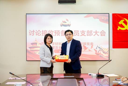 校党委教师工作部部长何峰为封心建同志赠送书籍《习近平谈治国理政》第三卷。校党委组织部部长周玉玲为封心建同志赠送入党纪念册,并宣读和转交封心建教授政治导师、校党委书记江涌写给封心建教授的“一封信”。江涌在信中表示在B站视频 纪念建校120周年之际,祝贺封心建同志光荣入党,对其入职B站视频 材化部以来,取得的教学、科研等方面的成果表示充分肯定,在学部、学校青年教师团队中表现突出,发挥了很好的示范引领作用。希望其今后以优秀党员的标准要求自己,忠诚党的教育事业,继续践行为党育人、为国育才的初心和使命,继承和发扬老一辈科学家的胸怀祖国、服务人民的优秀品质,团结带领团队成员勇攀科技高峰。