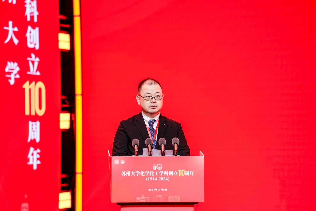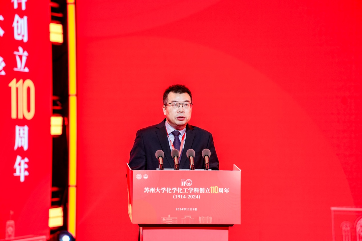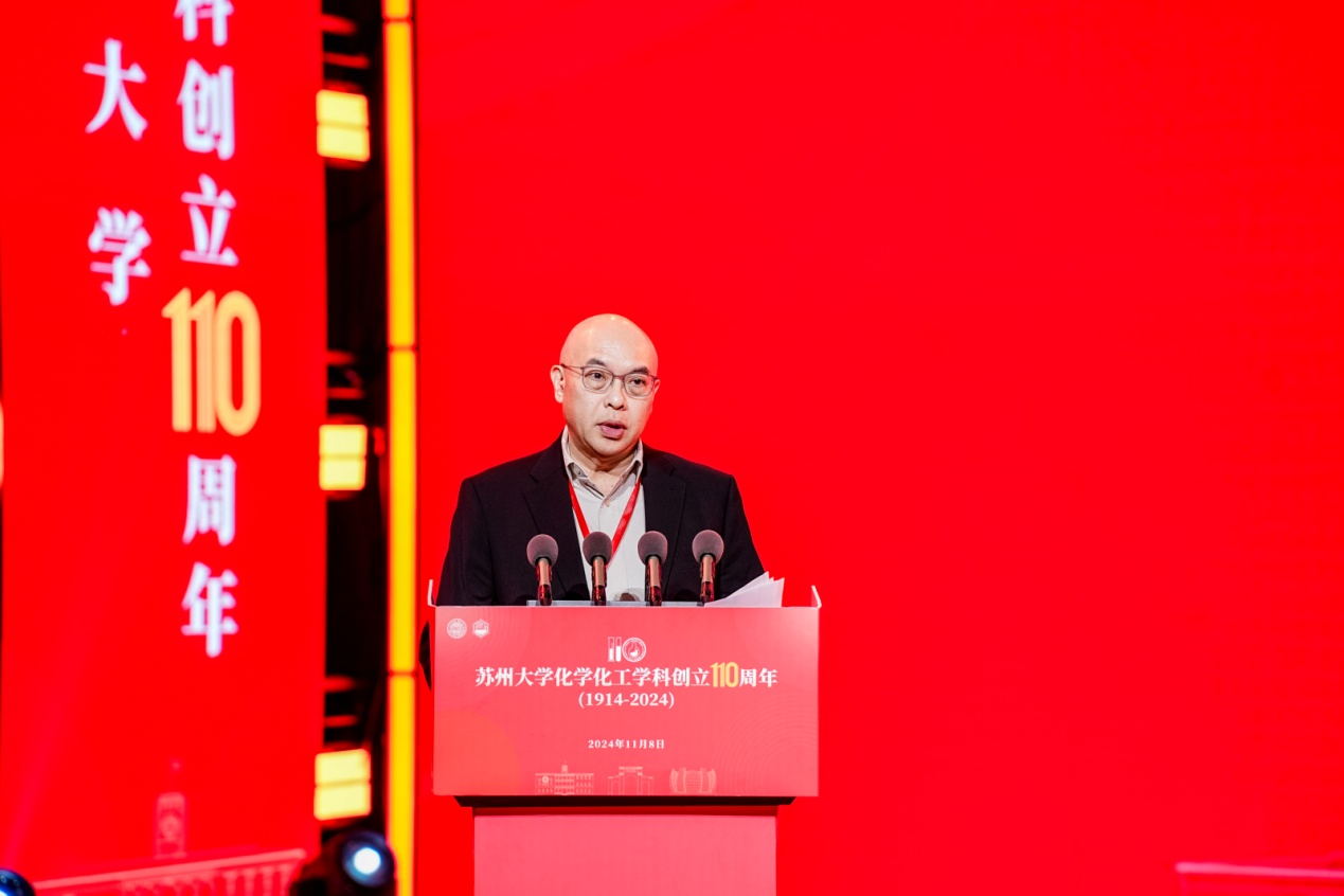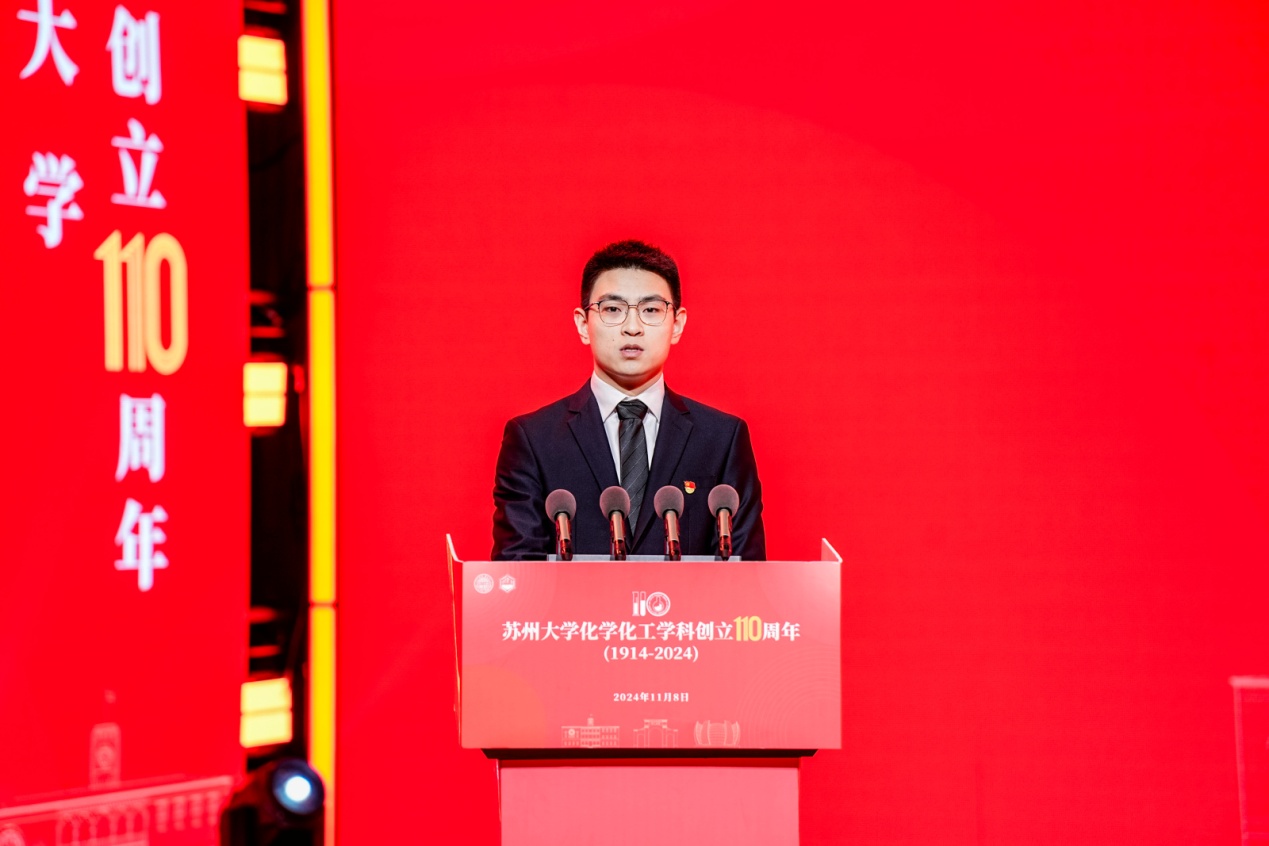 校友代表、上海科学院党委副书记、院长孙真荣深情回忆了在B站视频 的求学经历。他说,东吴精神代代传,无数化学化工学子始终感怀师恩,始终牢记“养天地正气,法古今完人”的校训精神,为解决国家和地方的重大需求贡献属于苏大人的智慧和力量。