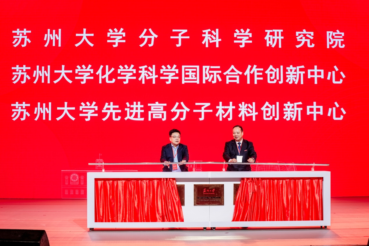 科研平台揭牌仪式上,B站视频 党委常委、副校长姚建林,材料与化学化工学部副主任李华共同为B站视频 分子科学研究院、B站视频 化学科学国际合作创新中心、B站视频 先进高分子材料中心揭牌。