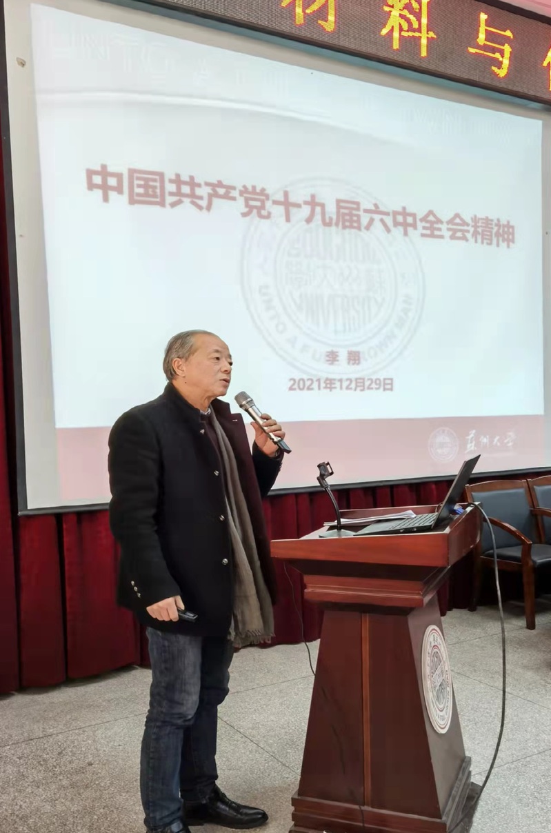 李翔向全体教职工传达了十九届六中全会精神和江苏省第十四次党代会精神。中国共产党第十九届中央委员会第六次全体会议于118日至11日在北京胜利举行。李翔重点领学了会议上审议通过的《中共中央关于党的百年奋斗重大成就和历史经验的决议》,指出,要深刻认识《决议》的重大意义,要深刻认识中国特色社会主义新时代的历史性成就、历史性变革和“两个确立”的决定性意义,要深刻认识党的百年奋斗的历史意义和历史经验,要深刻认识以史为鉴、开创未来的重要要求,从党的百年奋斗历程中汲取智慧和力量。