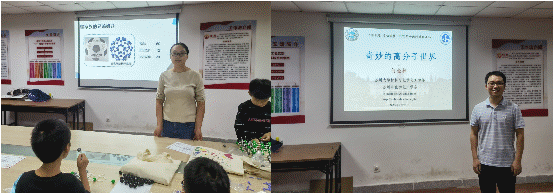 行政支部书记杨凤珠老师指导小朋友们拼插C60分子结构模型,通过认识了解结构,引入化学是在原子、分子水平上研究物质组成、结构、性质及变化,带大家了解碳元素家族成员金刚石、石墨和C60的不同特性,并解释了铅笔芯写字、橡皮擦去除铅笔字痕的原理。高分子系教工支部书记何金林老师深入浅出地从“高分子是什么”“常见的高分子有哪些”“高分子有什么用?”三个方面带小朋友们一起走进高分子的精彩世界。