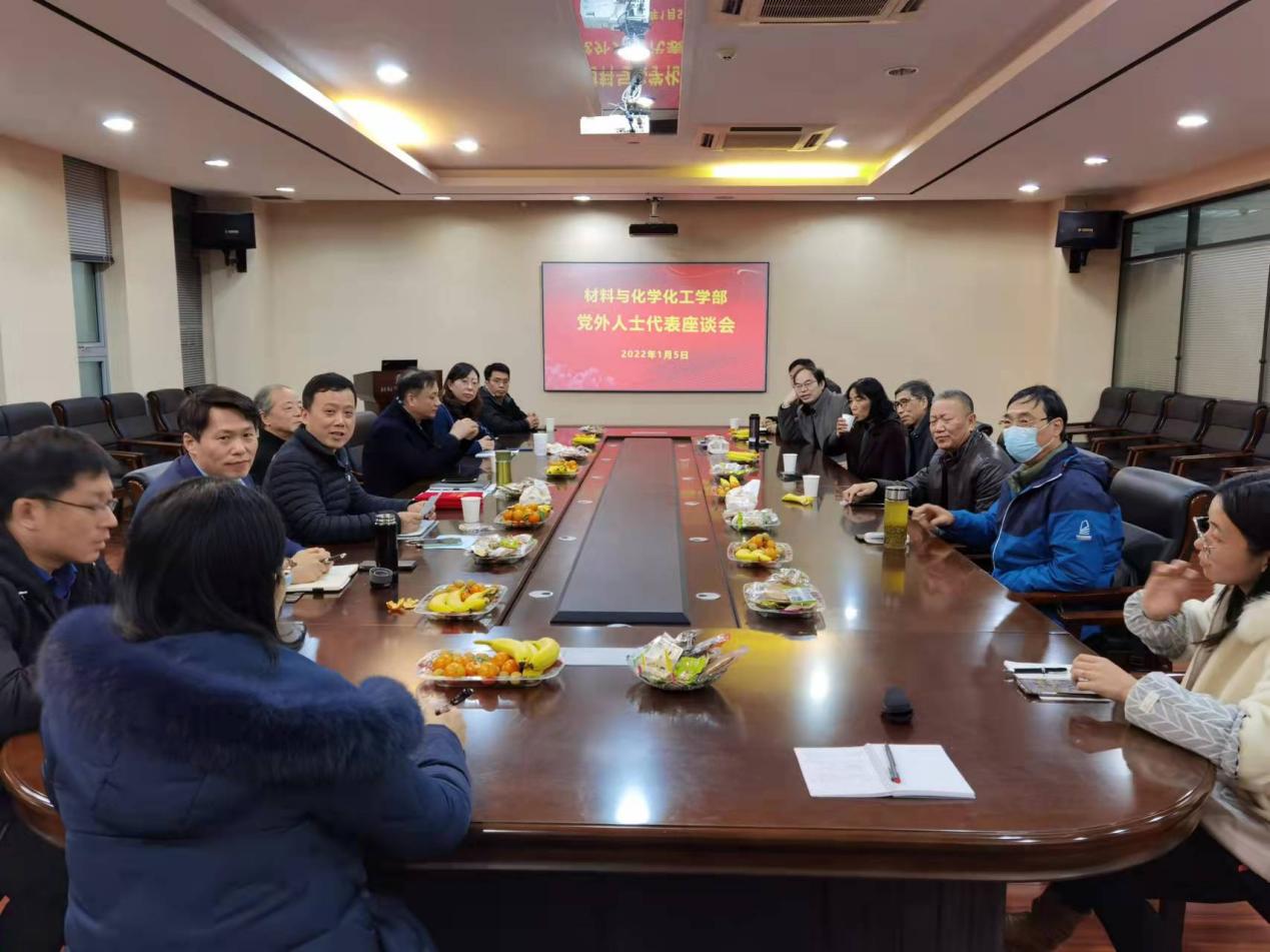 1月5日下午,材化部在907-1222召开2021年度党外人士代表座谈会,学部班子成员、党外人士代表参加会议,会议由学部党委委员、工会主席任志刚主持。