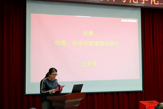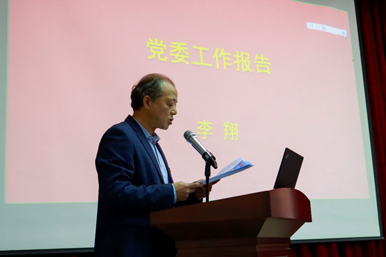 大会第一项议程,李翔代表学部党委作工作报告,汇报学部党委4年来的工作内容、完成情况、不足之处以及未来目标,大会审议通过报告。大会第二项议程,王美珠作党费收缴、使用和管理情况报告,大会审议通过报告。