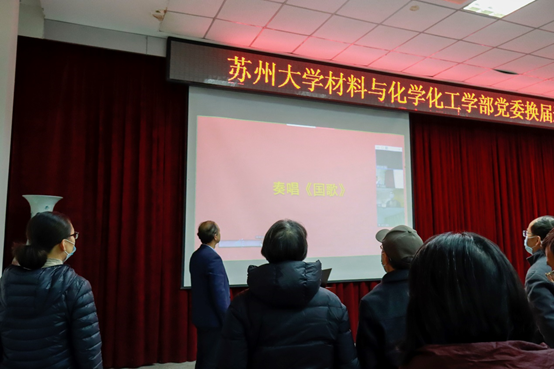 全体奏唱国歌完毕后,校党办副主任袁冬梅宣读《校党委关于进一步严肃院级党组织换届选举工作的要求》。