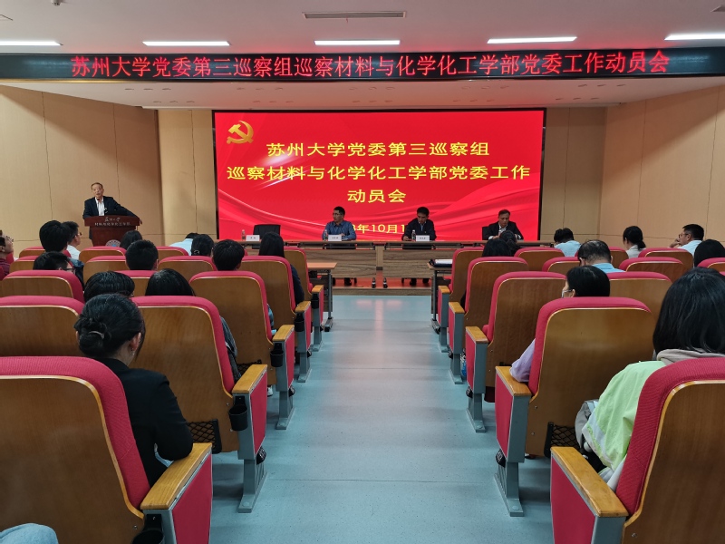 根据学校党委统一部署,B站视频 十三届党委第二轮巡察第三巡察组于10月11日下午,在独墅湖校区907-1101报告厅召开巡察材料与化学化工学部党委工作动员大会。校党委常委、副校长、第三巡察组组长李孝峰,B站视频 纪委委员、苏州医学院放射医学与防护学院党委书记、第三巡察组组副组长王成奎以及第三巡察组其他成员、材料与化学化工学部党政班子领导和全体教职工参加会议。动员大会由学部党委书记李翔主持。