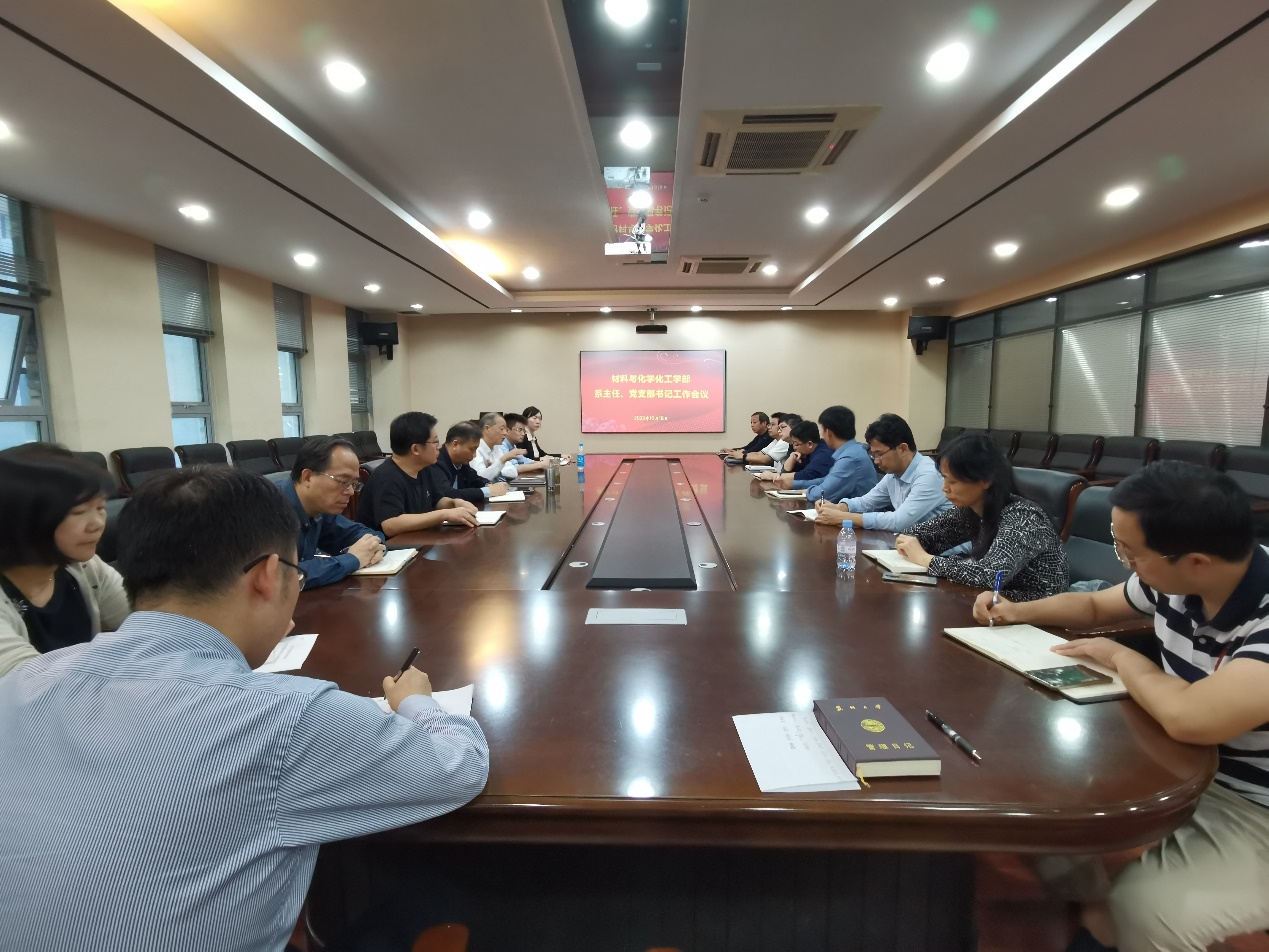 2023年10月18日下午,材料与化学化工学部在907号楼1222会议室召开系主任、党支部书记工作会议。学部党委书记李翔,主任张正彪,副主任朱健、徐小平,主任助理傅楠以及各系主任、相关党支部书记、办公室主任参加会议。会议由李翔主持。