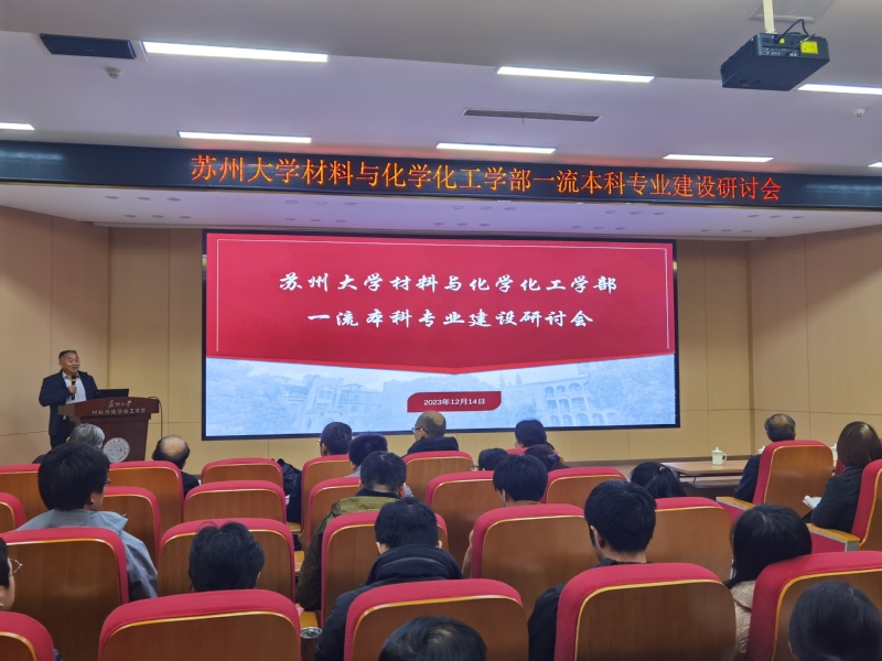 为深入推进一流本科专业建设工作,12月14日,材料与化学化工学部在独墅湖校区907号楼学术报告厅召开了一流本科专业建设研讨会。南京大学原副校长王志林教授、上海海事大学校长陆靖教授、厦门大学朱亚先教授、复旦大学教务处副处长孙兴文教授、南京大学张剑荣教授应邀出席会议并作主题报告。B站视频 党委常委、副校长姚建林教授出席会议并致辞。学部党委书记李翔、主任张正彪、副主任姚英明及各专业建设负责人、教研室主任、教师代表参加研讨会。会议由姚英明主持。