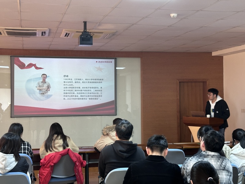 余奇坤同学生动讲述了缪峰教授的科研故事,展现了缪教授敢冲敢闯的科研精神,突显了当代科研工作者将个人成长同国家发展紧密联系的爱国情怀,激发了在座学生党员对科研的热情追求和对社会对国家的责任感。