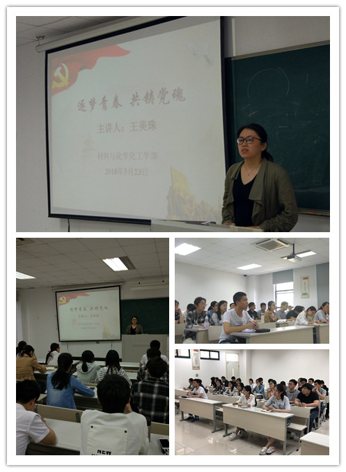 2018年5月23日中午12:30,材料与化学化工学部分党校在独墅湖校区606幢6124室举行了第59期党的基础知识培训第四次讲座,由学部党委副书记王美珠主讲。