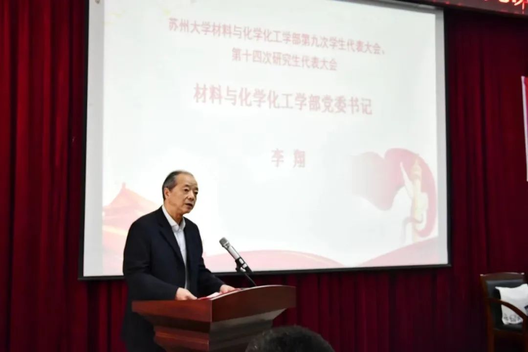 李翔为本次大会致开幕词,首先他代表学部党委对此次学代会、研代会的顺利召开表示热烈的祝贺,对党委研究生工作部、研究生院、校团委给予本次大会的高度重视及大力支持表示衷心的感谢。他回顾并肯定了材化部第八届学生会与第十三届研究生会开展的各项工作以及取得的成绩,并对下一届学生会与研究生会提出了未来展望与新要求。他勉励在场代表们认真学习贯彻落实党的二十大精神,坚定理想信念,脚踏实地,紧扣时代脉搏,立足长远发展。