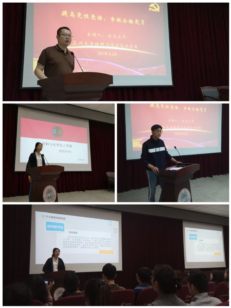 20194241230分,材料与化学化工学部分党校在独墅湖校区9071101室组织了题为《提高党性觉悟,争做合格党员》的专题微党课,学工办主任司马文华老师围绕党的先进性,讲述了作为一名党员或入党积极分子应该具有的党性修养,强调了为人民服务的重要性,引导学员们弘扬勇于担当、乐于奉献的精神,同时司马老师还围绕分党校的各项规章制度和党员发展的流程,要求学员们加强纪律意识,努力成为一名合格的中共党员。在此次培训中党校读书会负责人陈敏铭向大家介绍了读书会的基本情况及工作安排,为学员们提供了丰富的读书活动;研究生党员张程也上台进行了交流了他成为中共党员的心路历程,通过自身经历为学员们阐明了信仰对于党员的重要性,告诉学员们要端正入党态度,不忘初心,在学习、工作、生活等各方面践行为人民服务的宗旨,处处争当楷模。