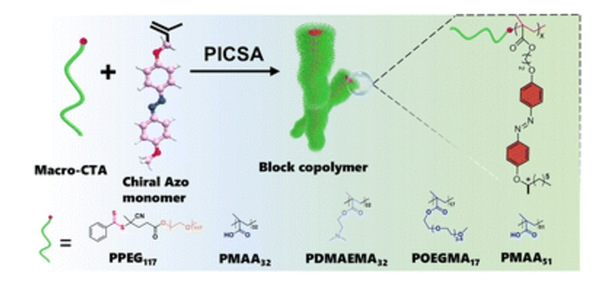 Abstract: Tuning the type of solvophilic chain and the length of the nucleating segment in polymerization-induced chiral self-assembly drives the formation of azobenzene liquid-crystalline block copolymer assemblies, facilitating tunable chiroptical inversions. The chiral stacking, morphological transitions, and liquid-crystalline ordering of these assemblies were systematically analyzed.